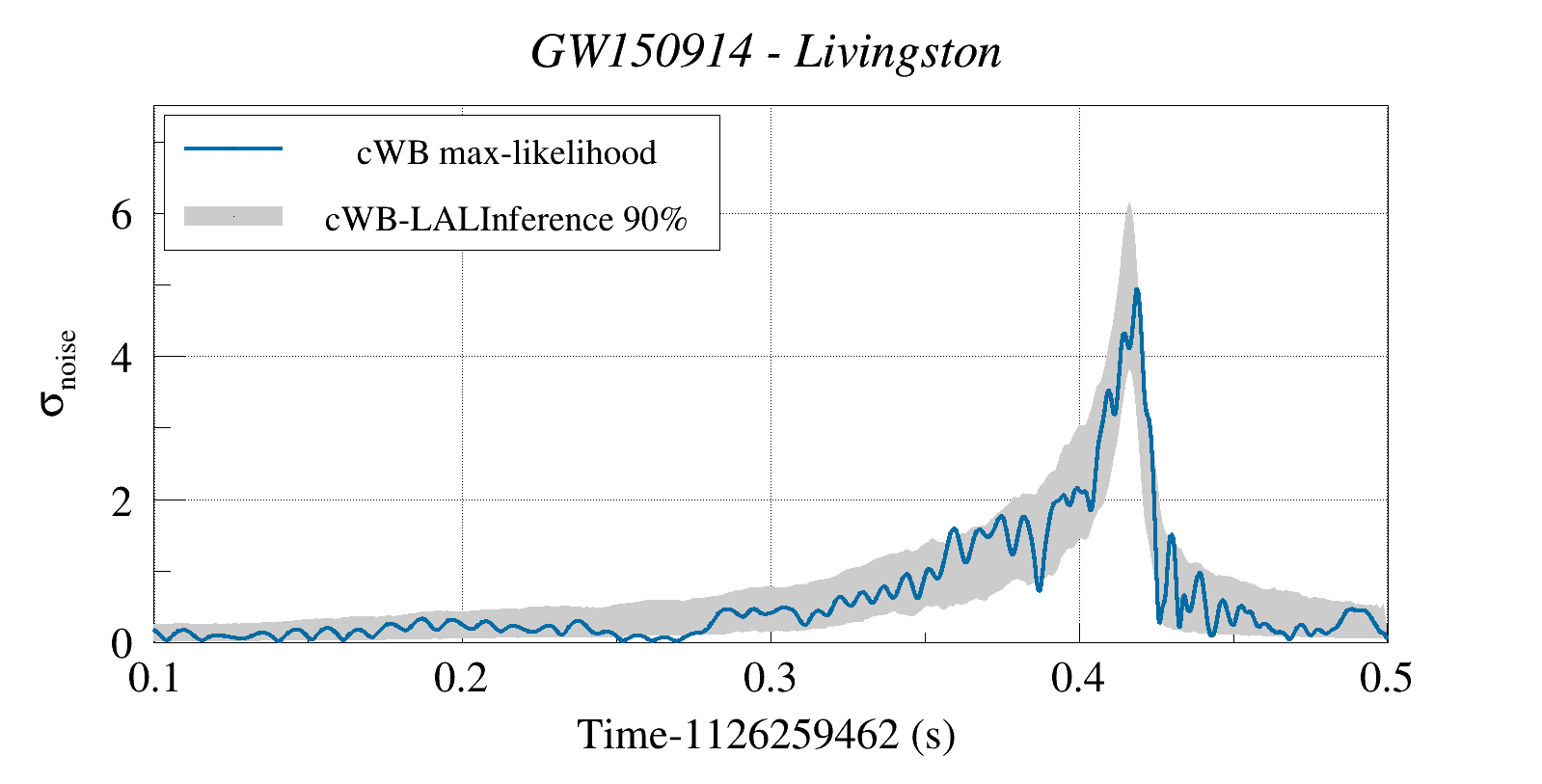 (cWB max-likelihood) vs (90% Confidence Interval: cWB Reconstructed LALInference Waveforms)