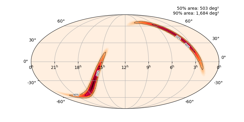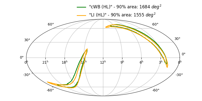 Skymap 90% - cWB (HL) vs LALInference (HL)