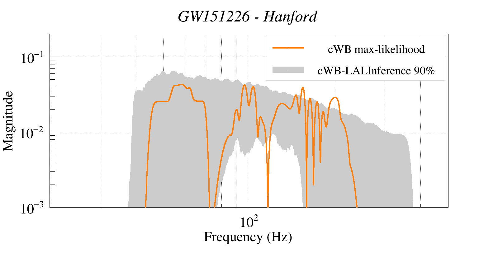 (cWB max-likelihood) vs (90% Confidence Interval: cWB Reconstructed LALInference Waveforms)