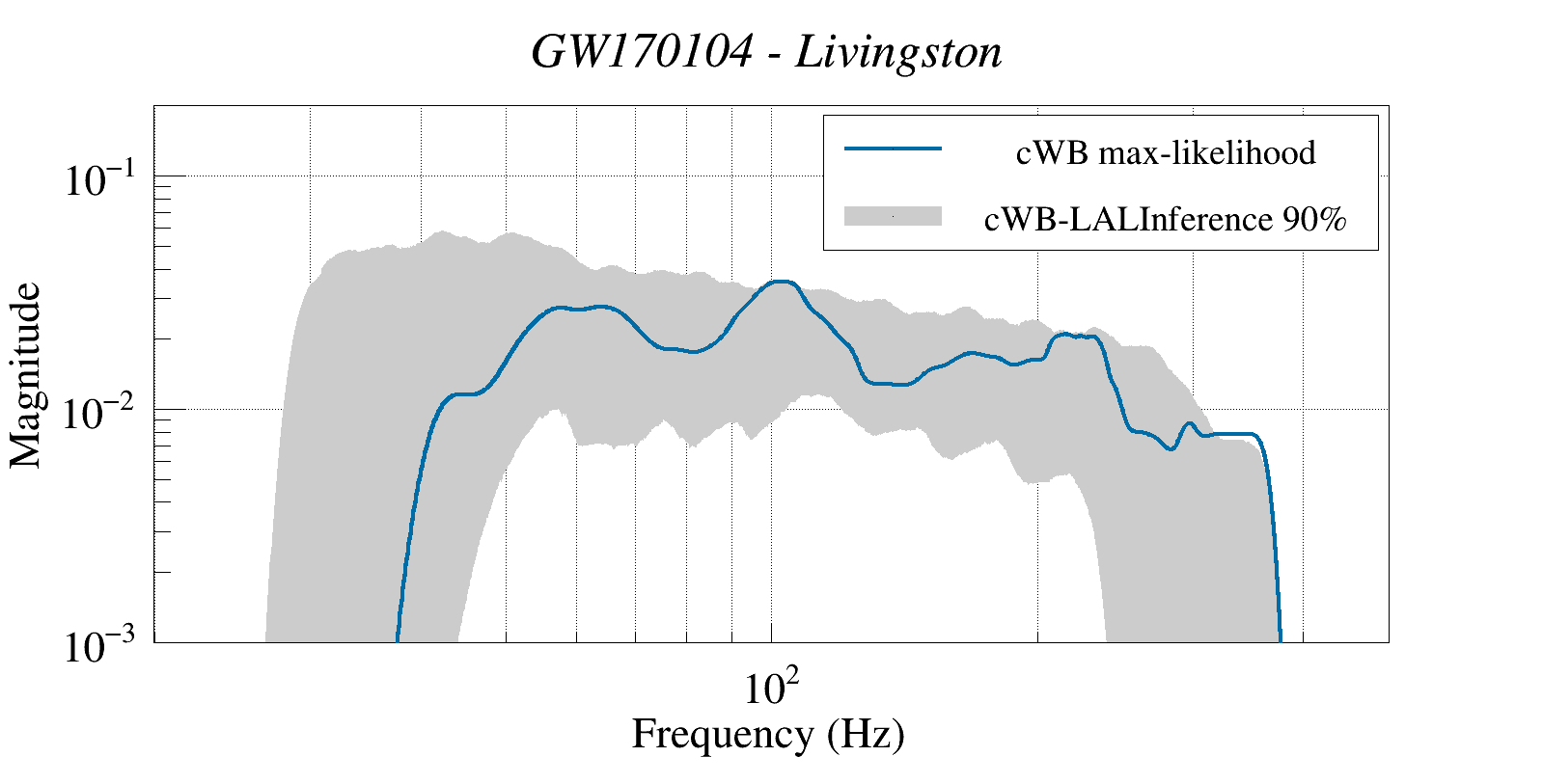 (cWB max-likelihood) vs (90% Confidence Interval: cWB Reconstructed LALInference Waveforms)
