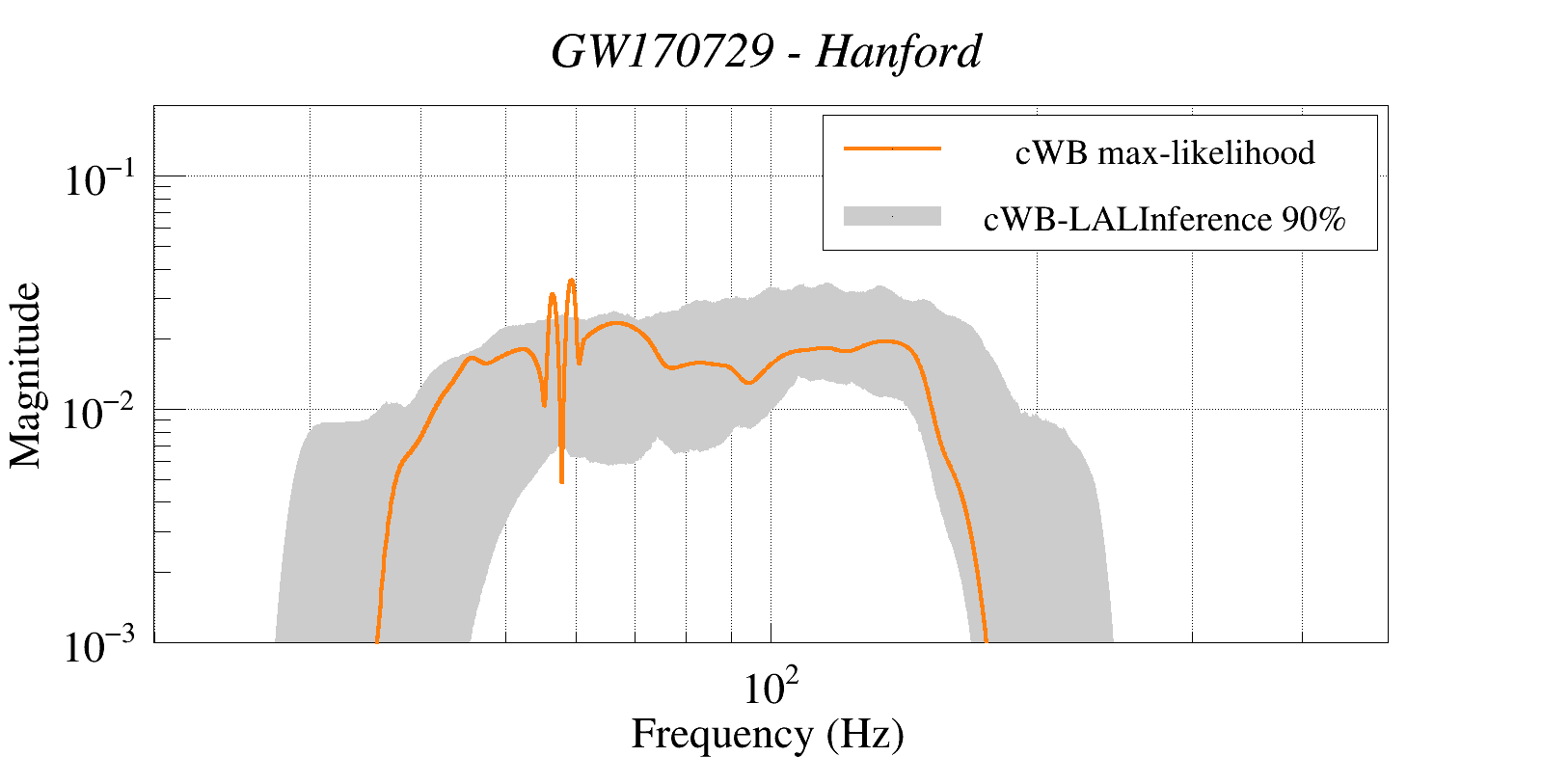 (cWB max-likelihood) vs (90% Confidence Interval: cWB Reconstructed LALInference Waveforms)