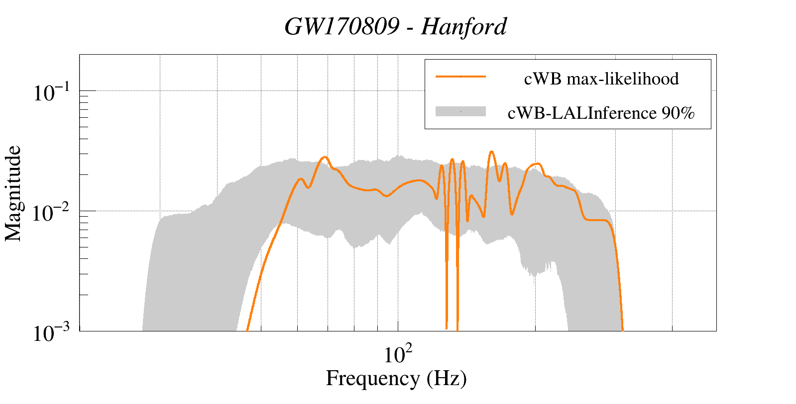 (cWB max-likelihood) vs (90% Confidence Interval: cWB Reconstructed LALInference Waveforms)
