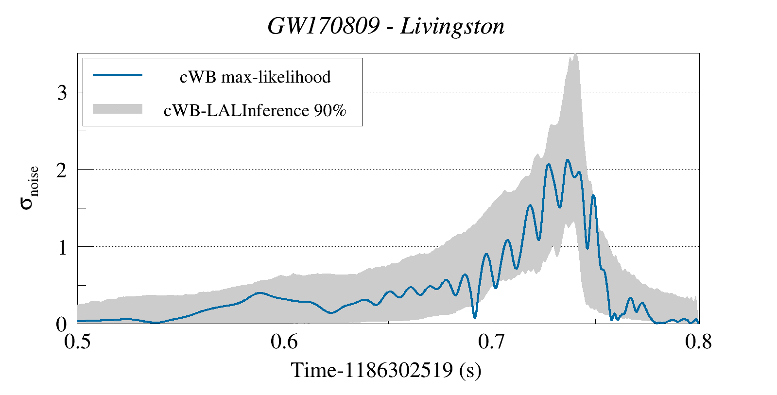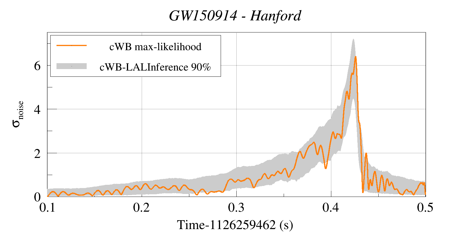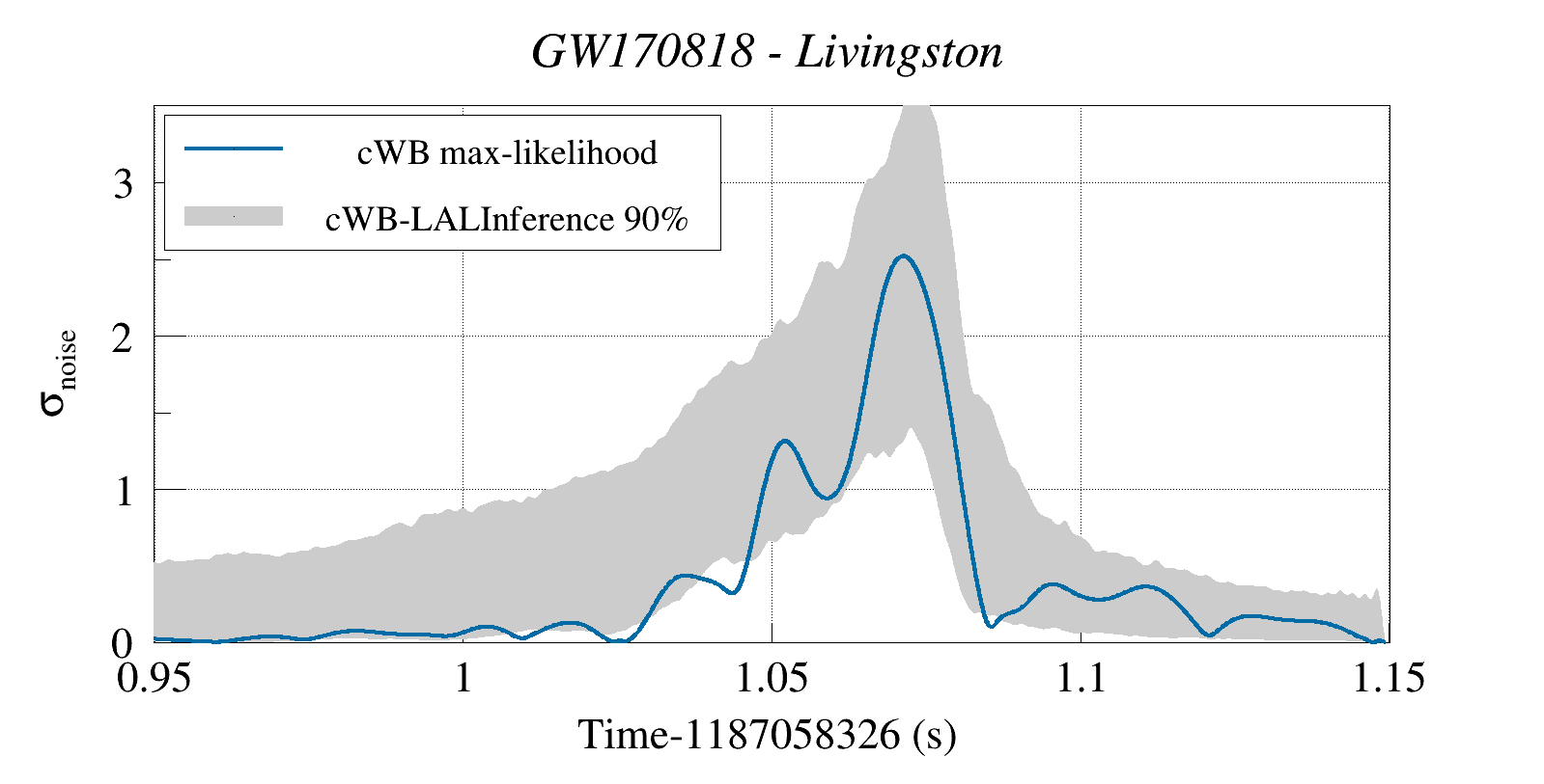 (cWB max-likelihood) vs (90% Confidence Interval: cWB Reconstructed LALInference Waveforms)