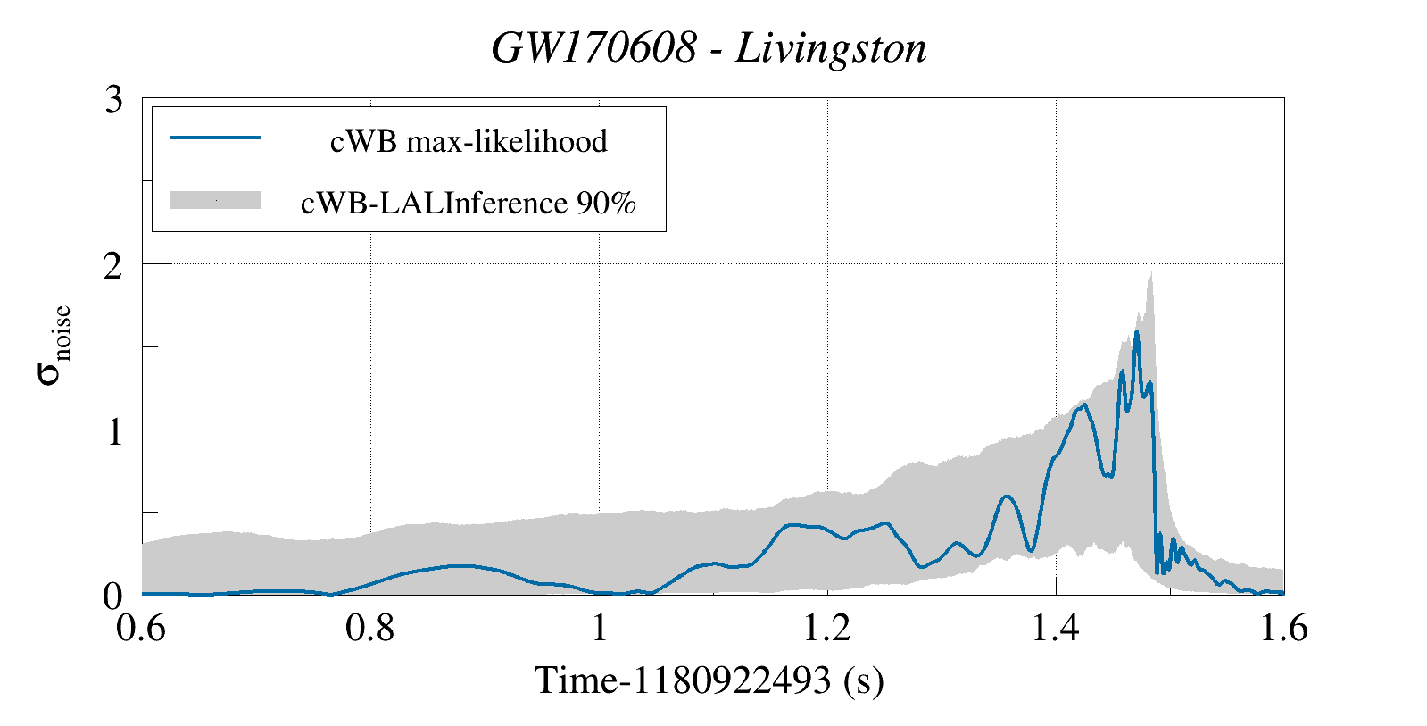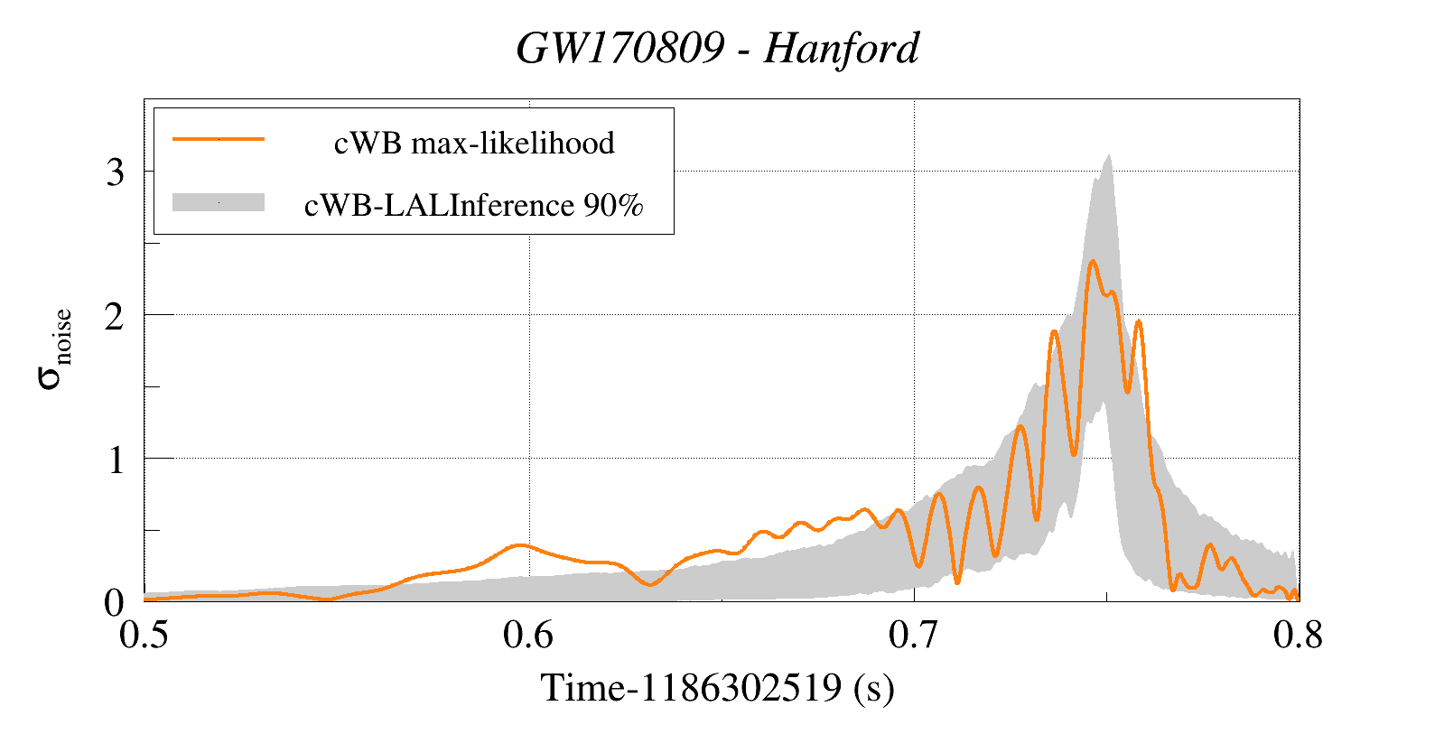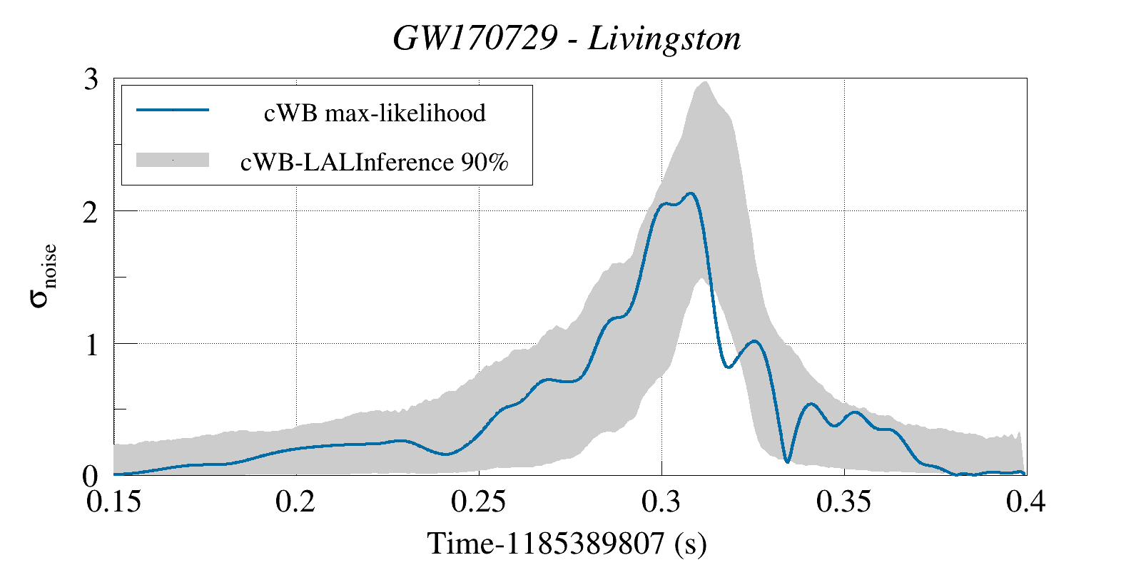 (cWB max-likelihood) vs (90% Confidence Interval: cWB Reconstructed LALInference Waveforms)
