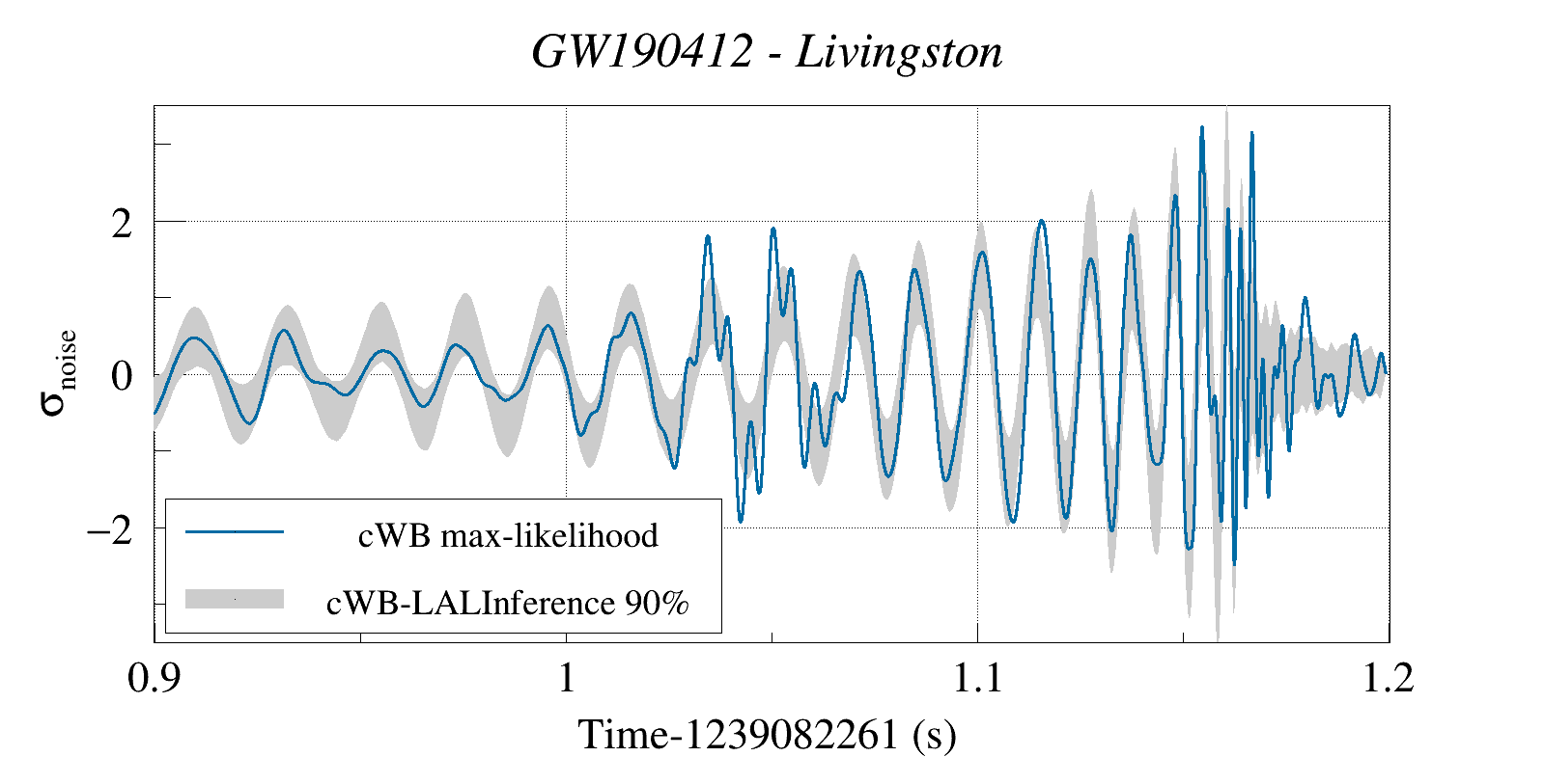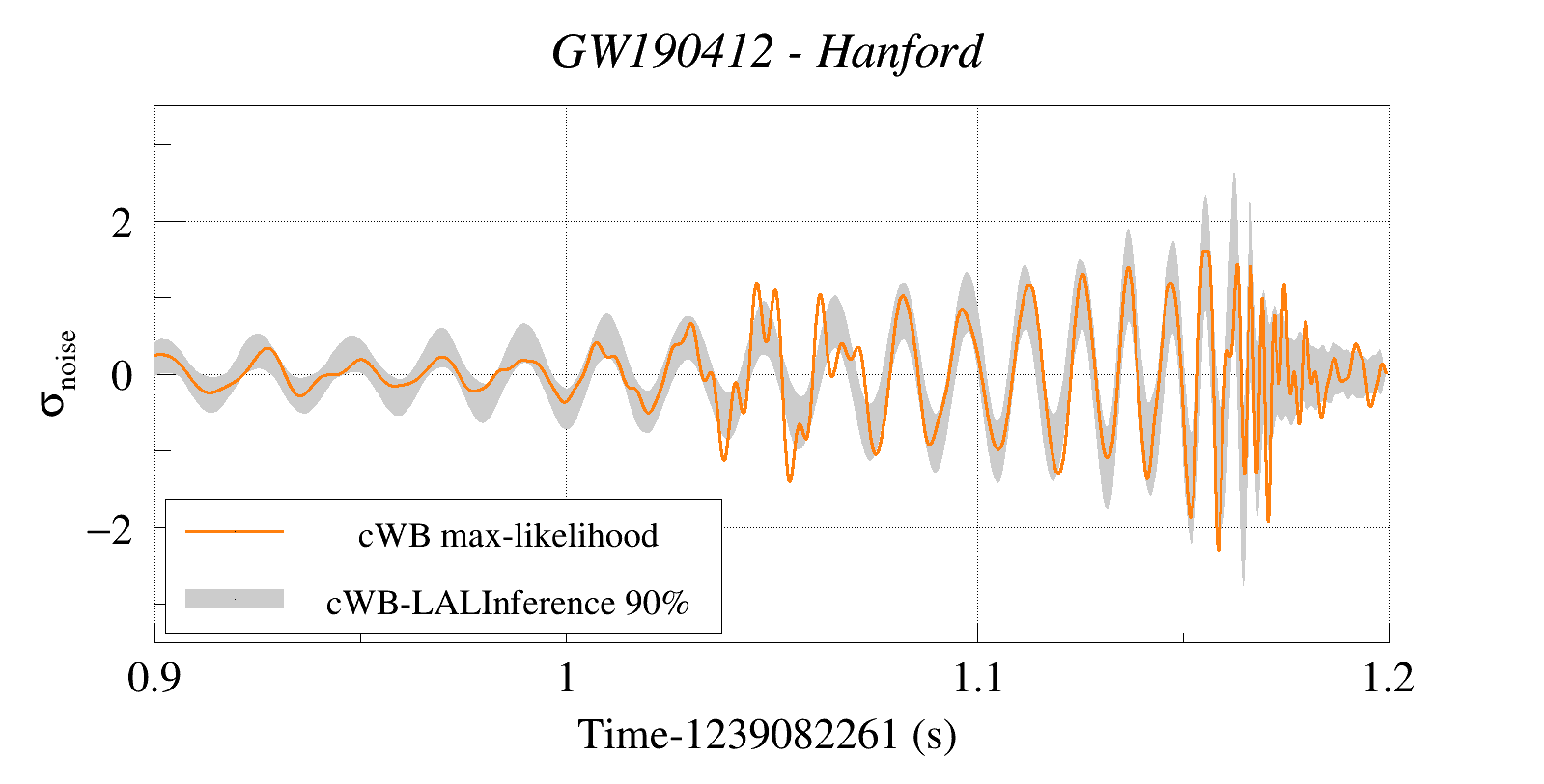 (cWB max-likelihood) vs (90% Confidence Interval: cWB Reconstructed LALInference Waveforms)