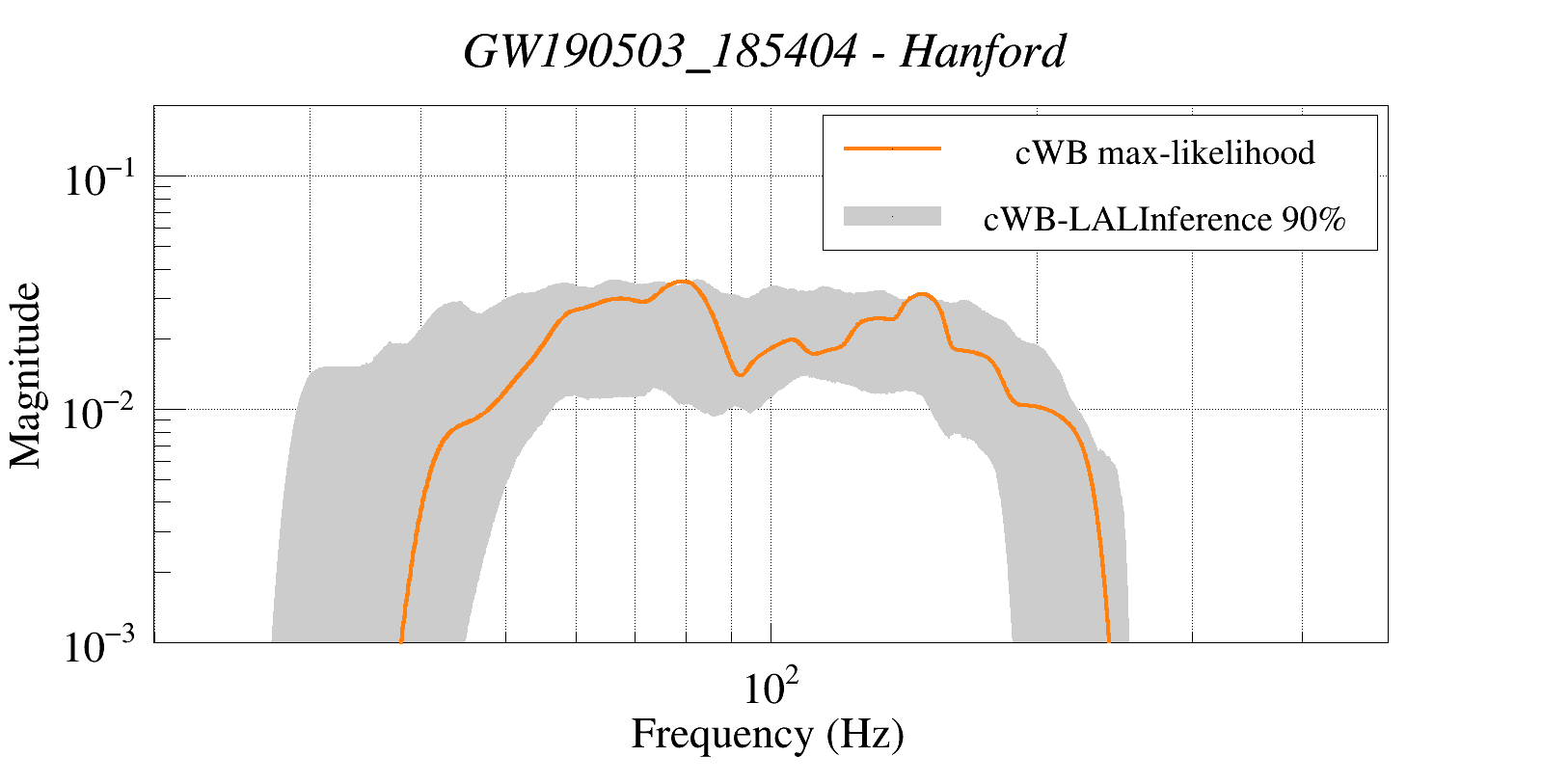 (cWB max-likelihood) vs (90% Confidence Interval: cWB Reconstructed LALInference Waveforms)