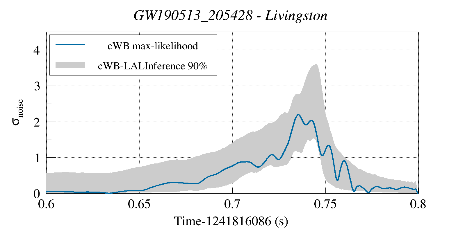 (cWB max-likelihood) vs (90% Confidence Interval: cWB Reconstructed LALInference Waveforms)