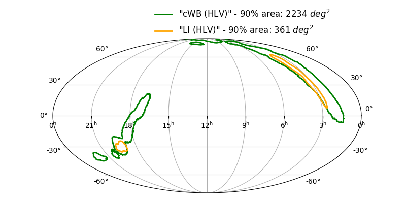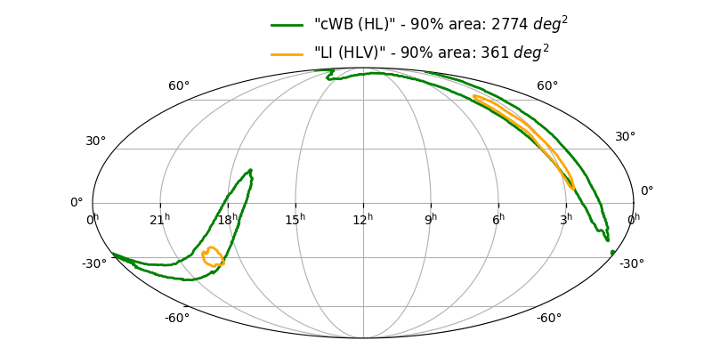 Skymap 90% - cWB (HL) vs LALInference (HLV)