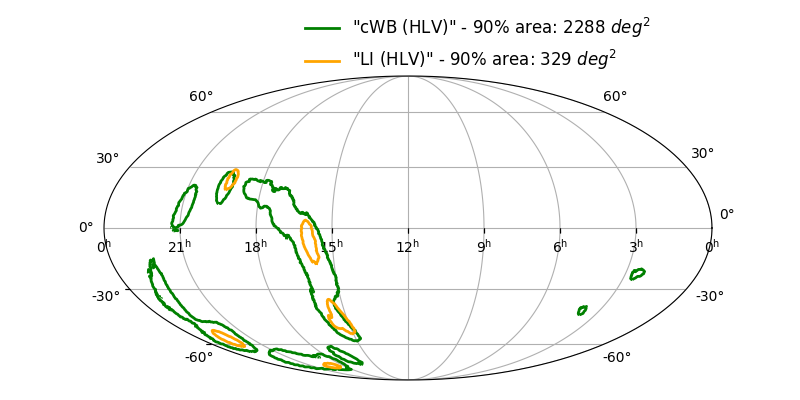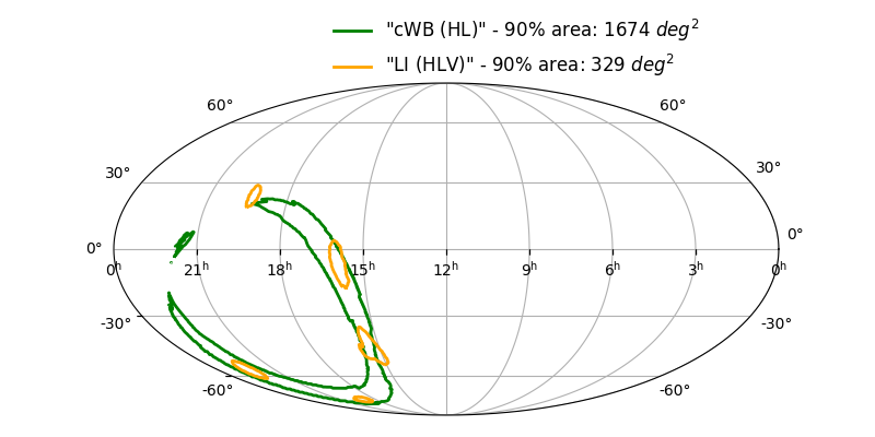 Skymap 90% - cWB (HL) vs LALInference (HLV)