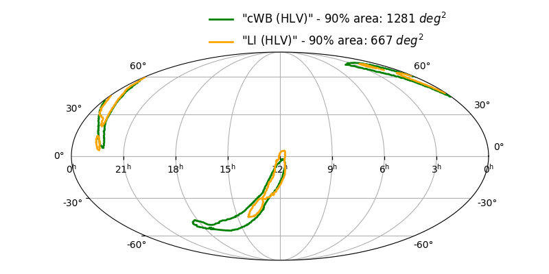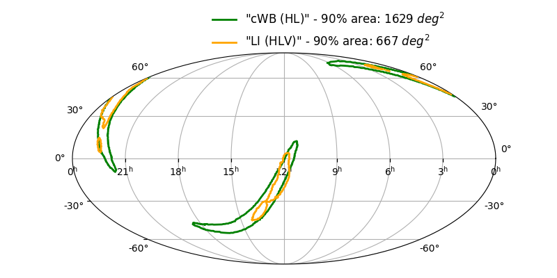Skymap 90% - cWB (HL) vs LALInference (HLV)