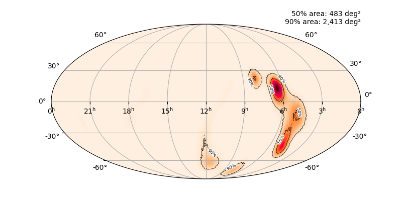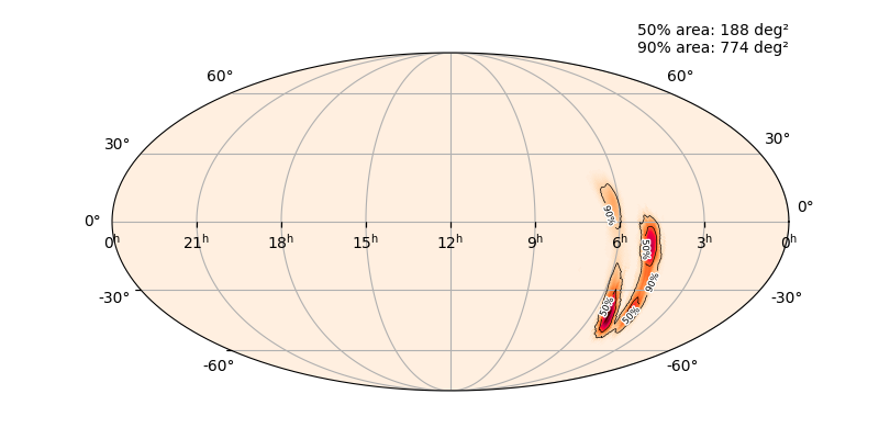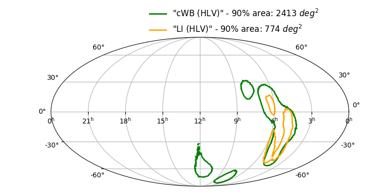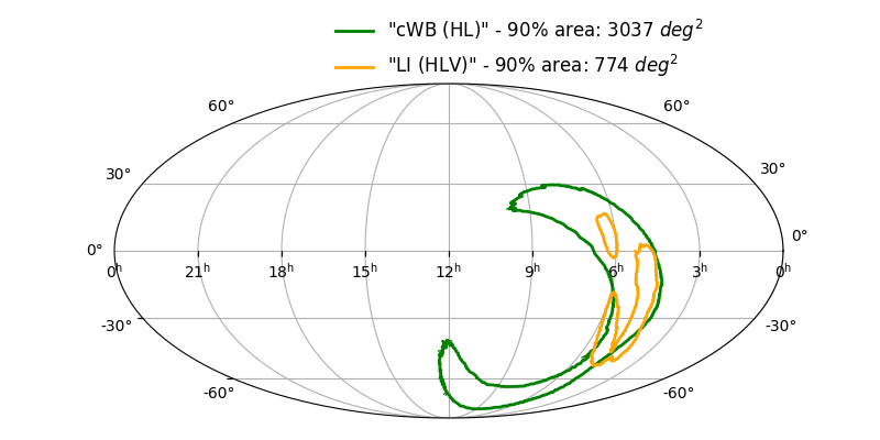 Skymap 90% - cWB (HL) vs LALInference (HLV)