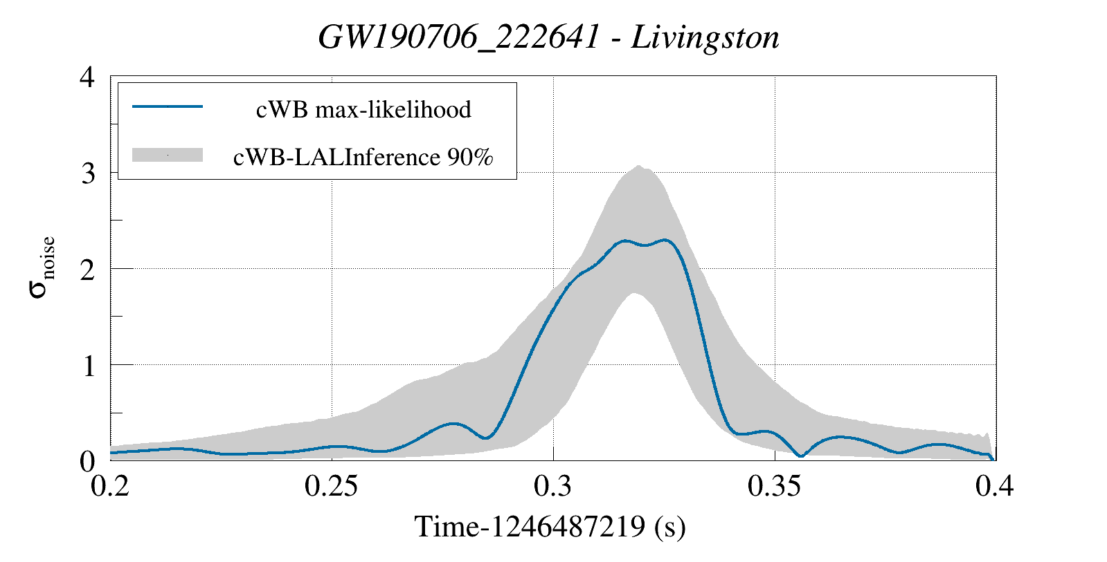 (cWB max-likelihood) vs (90% Confidence Interval: cWB Reconstructed LALInference Waveforms)