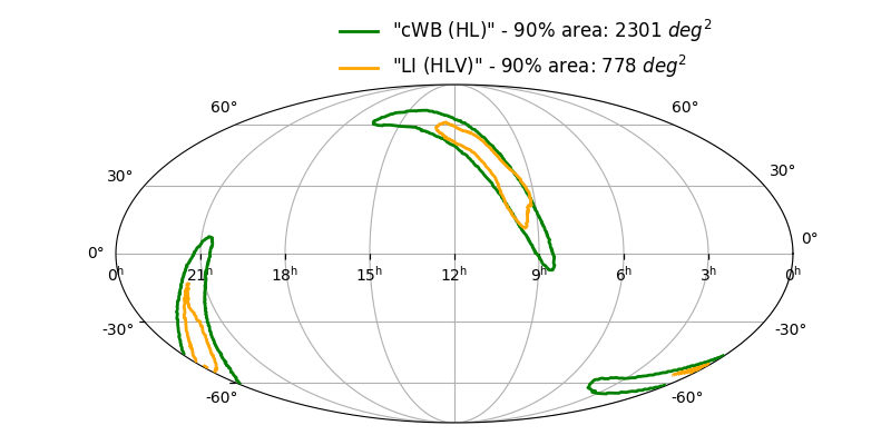 Skymap 90% - cWB (HL) vs LALInference (HLV)