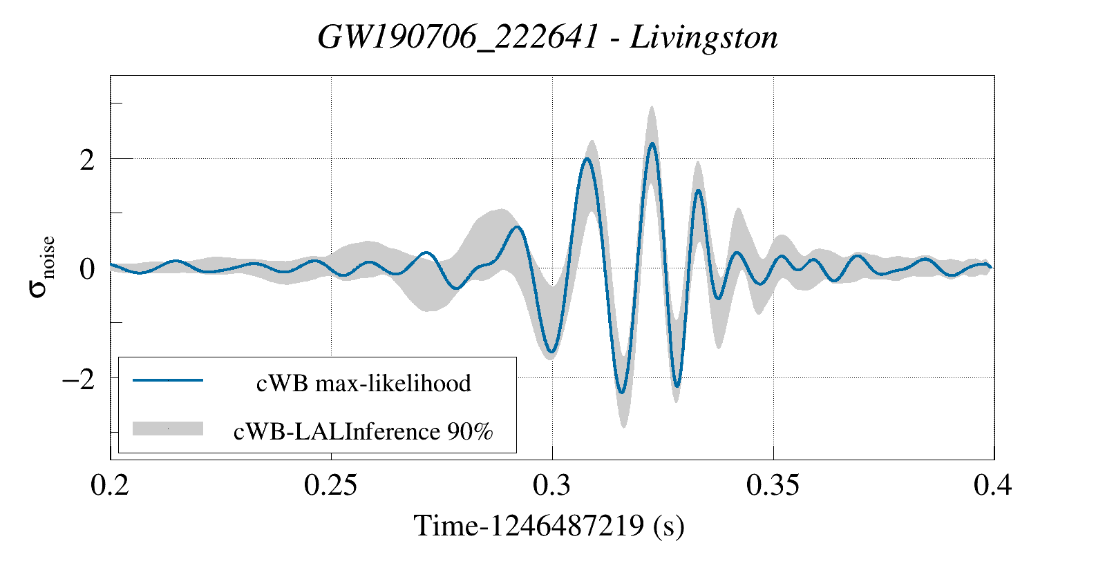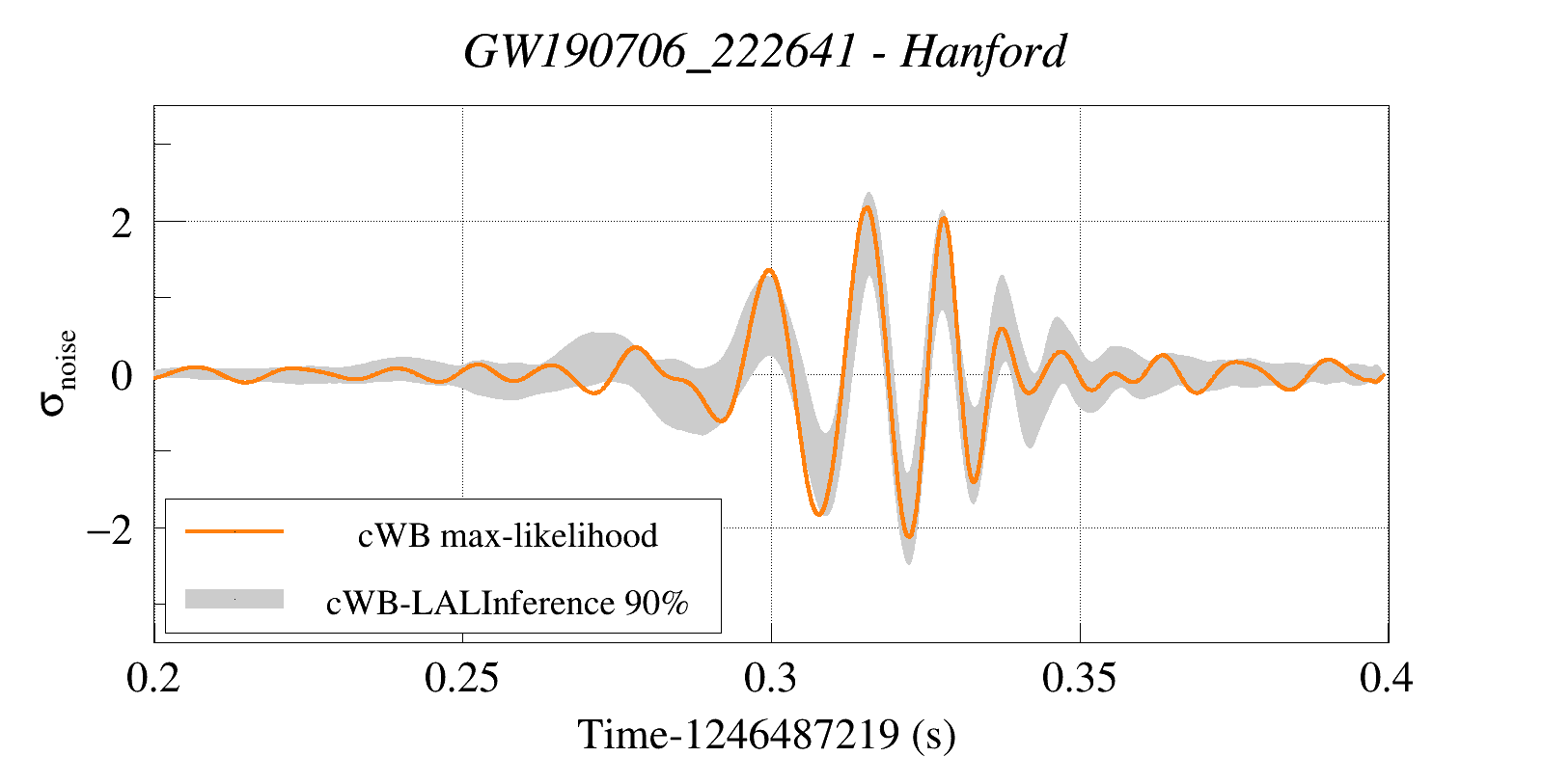 (cWB max-likelihood) vs (90% Confidence Interval: cWB Reconstructed LALInference Waveforms)