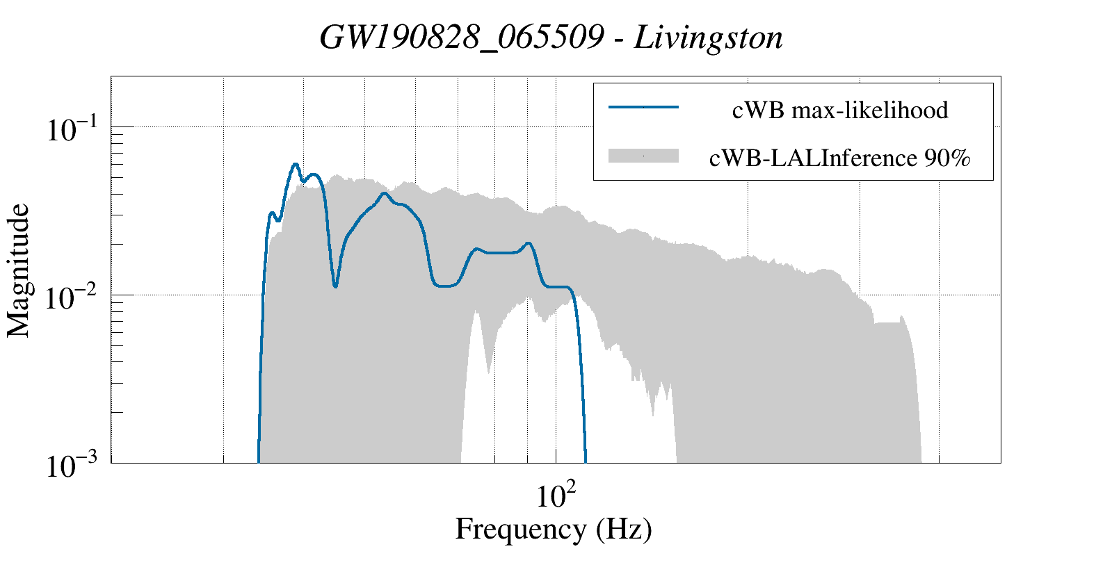 (cWB max-likelihood) vs (90% Confidence Interval: cWB Reconstructed LALInference Waveforms)