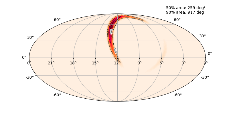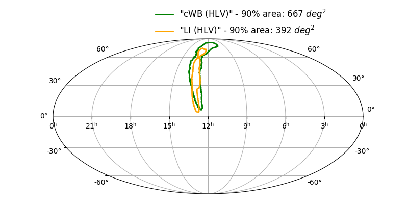 Skymap 90% - cWB (HL) vs LALInference (HLV)