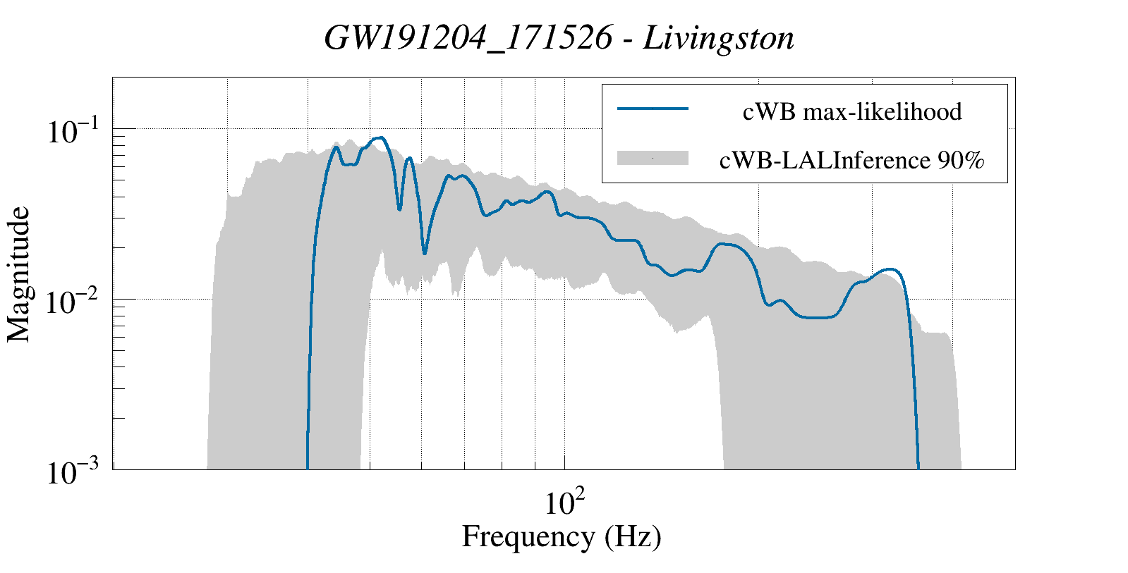 (cWB max-likelihood) vs (90% Confidence Interval: cWB Reconstructed LALInference Waveforms)