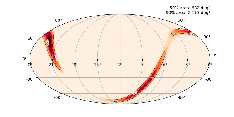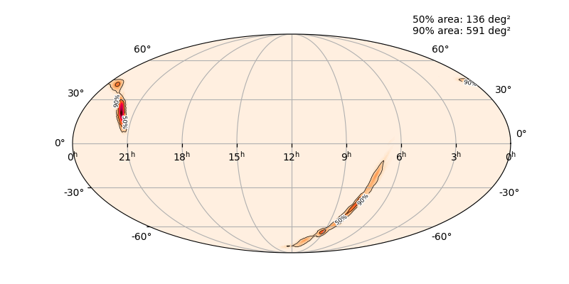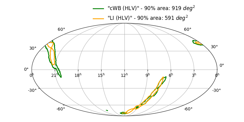 Skymap 90% - cWB (HL) vs LALInference (HLV)