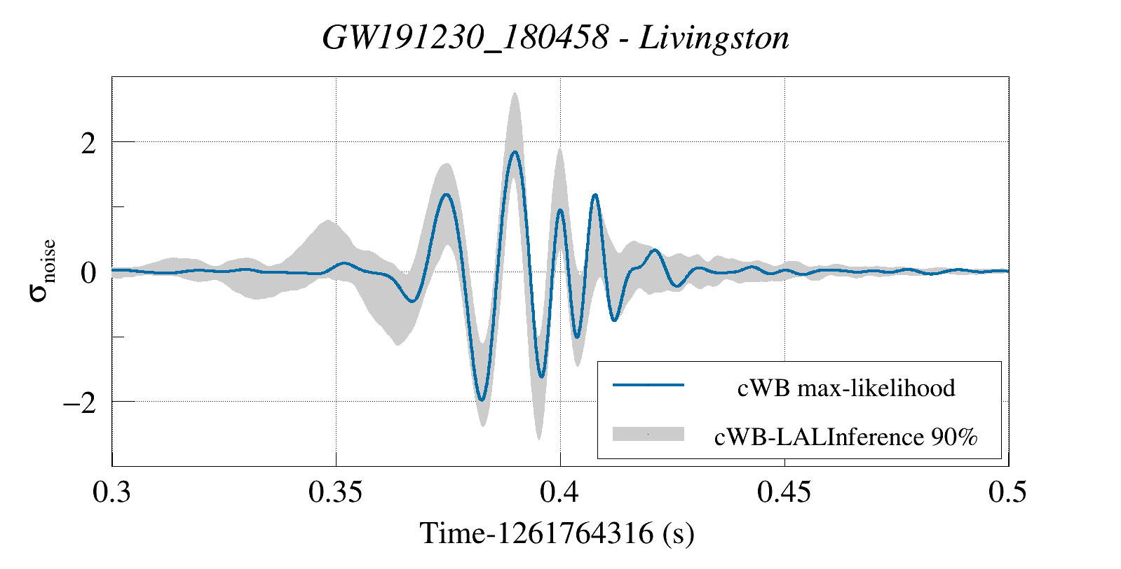 (cWB max-likelihood) vs (90% Confidence Interval: cWB Reconstructed LALInference Waveforms)