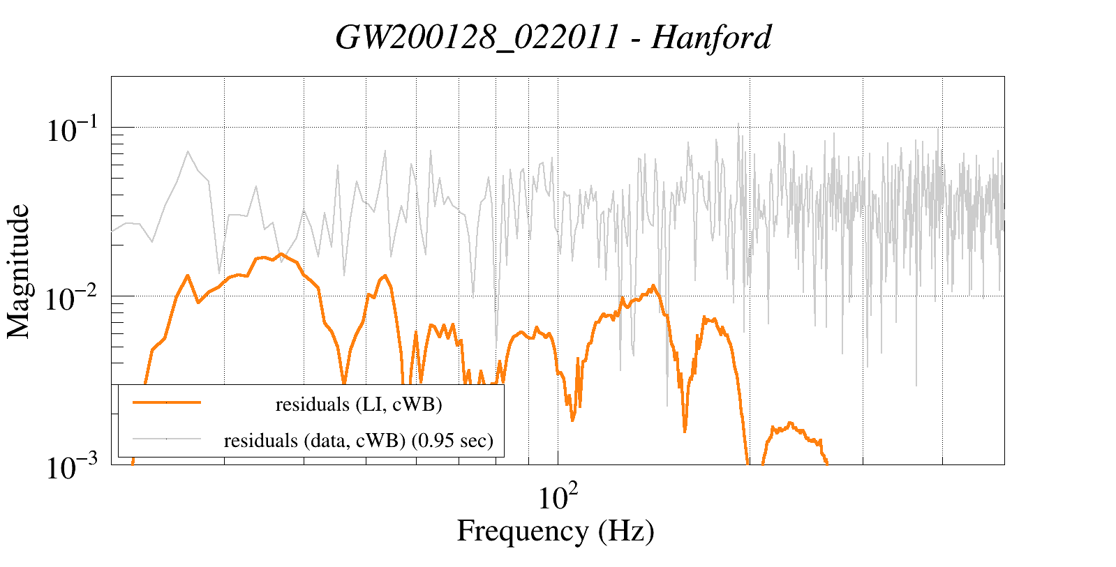 residuals (LALInference-cWB) vs residuals (data-cWB)