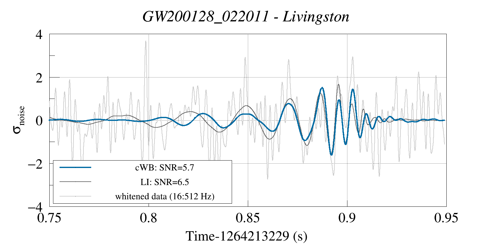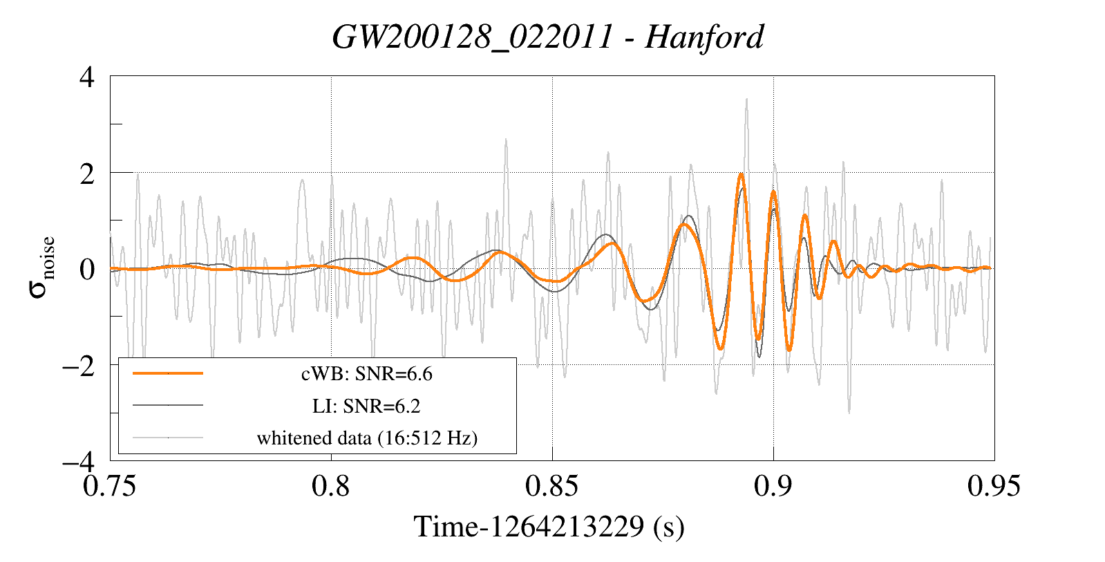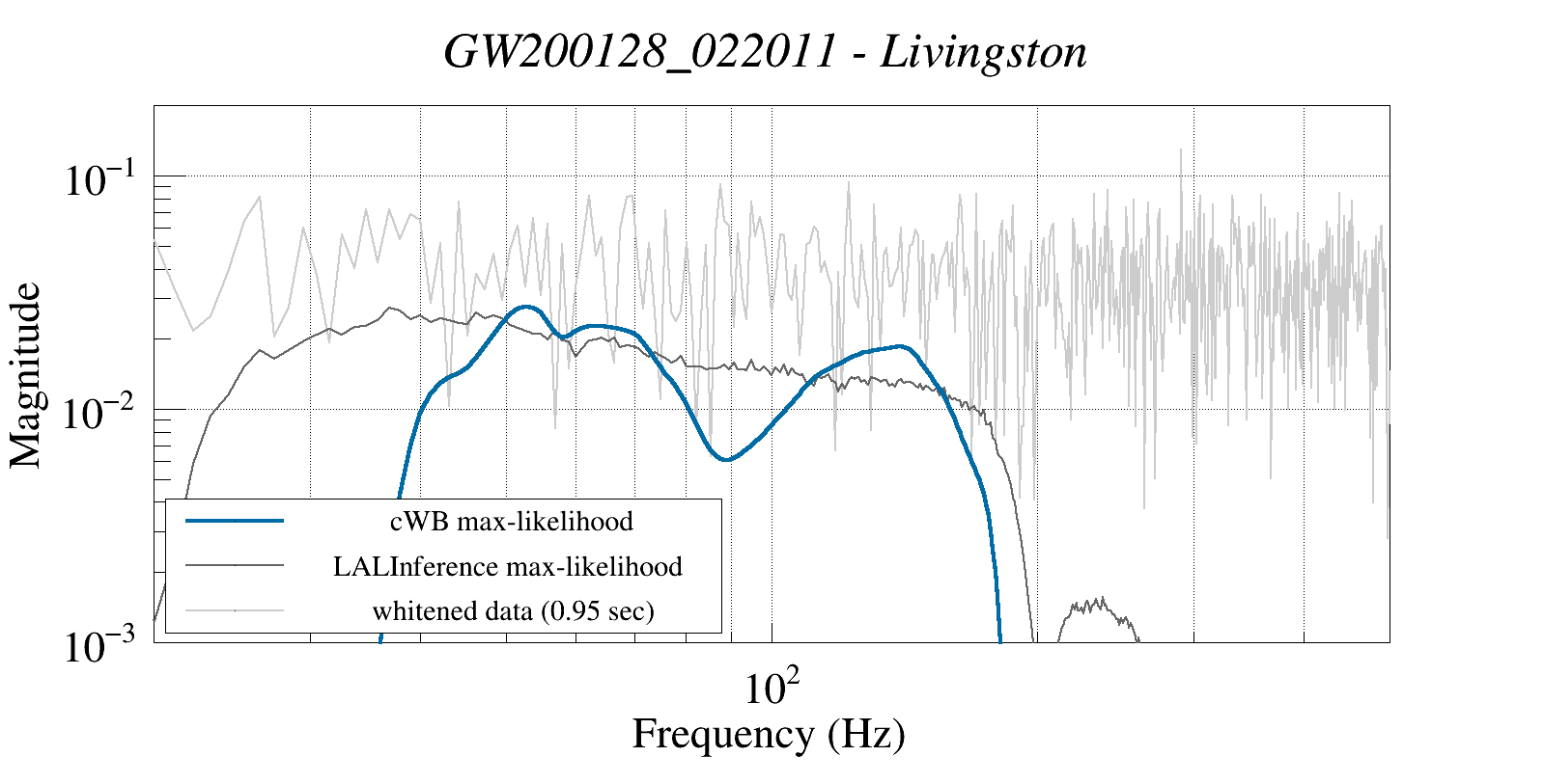 (cWB max-likelihood) vs (LALInference max-likelihood) vs (whitened data 16:512 Hz)