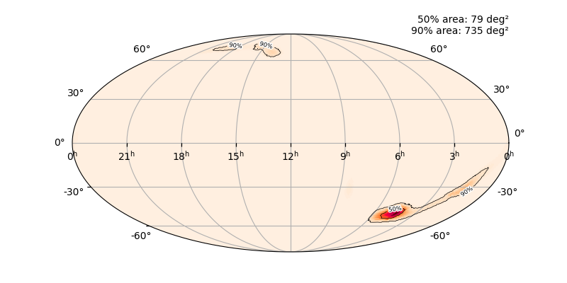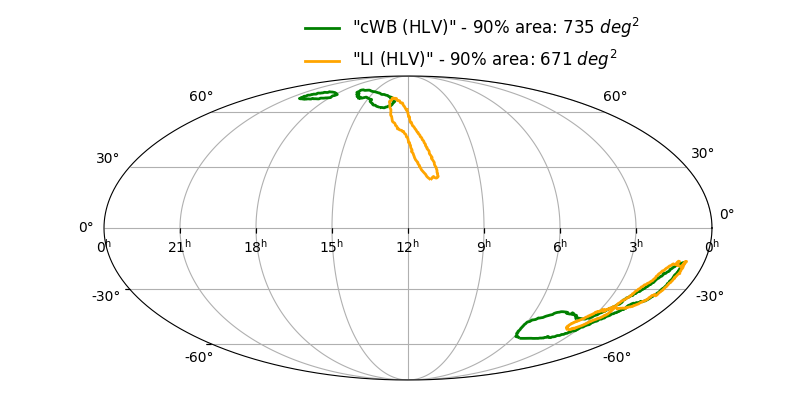 Skymap 90% - cWB (HL) vs LALInference (HLV)