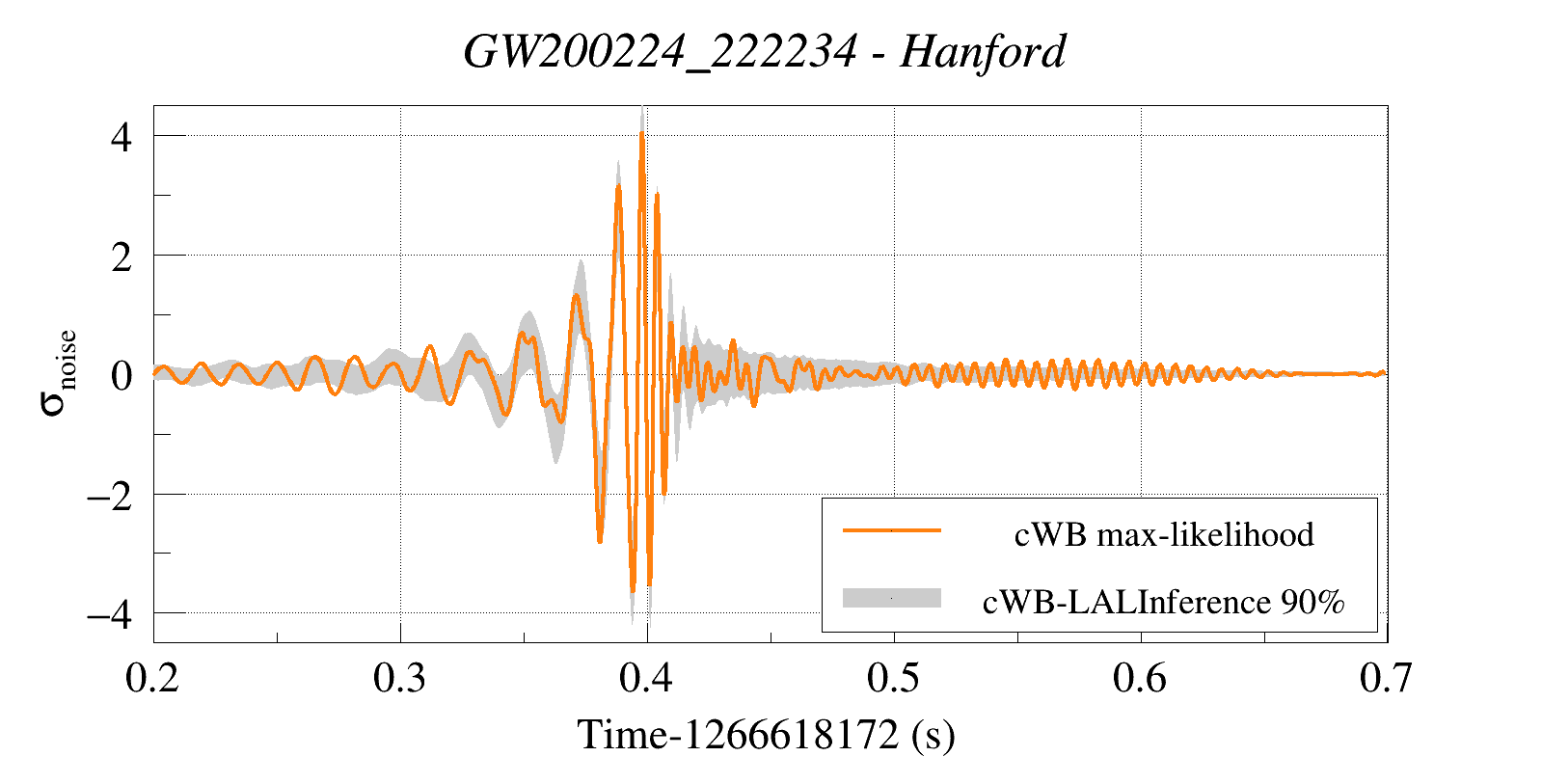 (cWB max-likelihood) vs (90% Confidence Interval: cWB Reconstructed LALInference Waveforms)