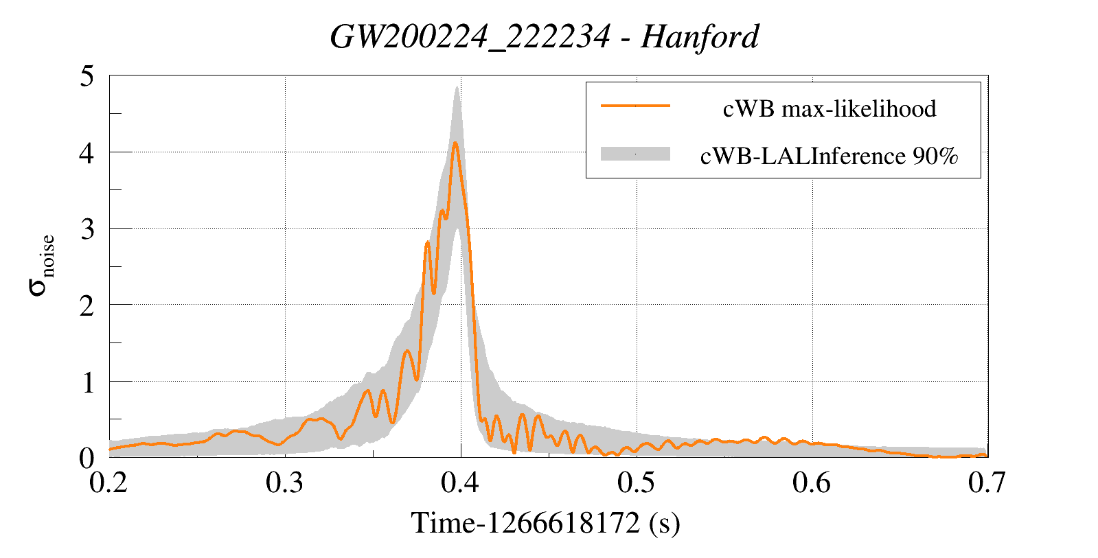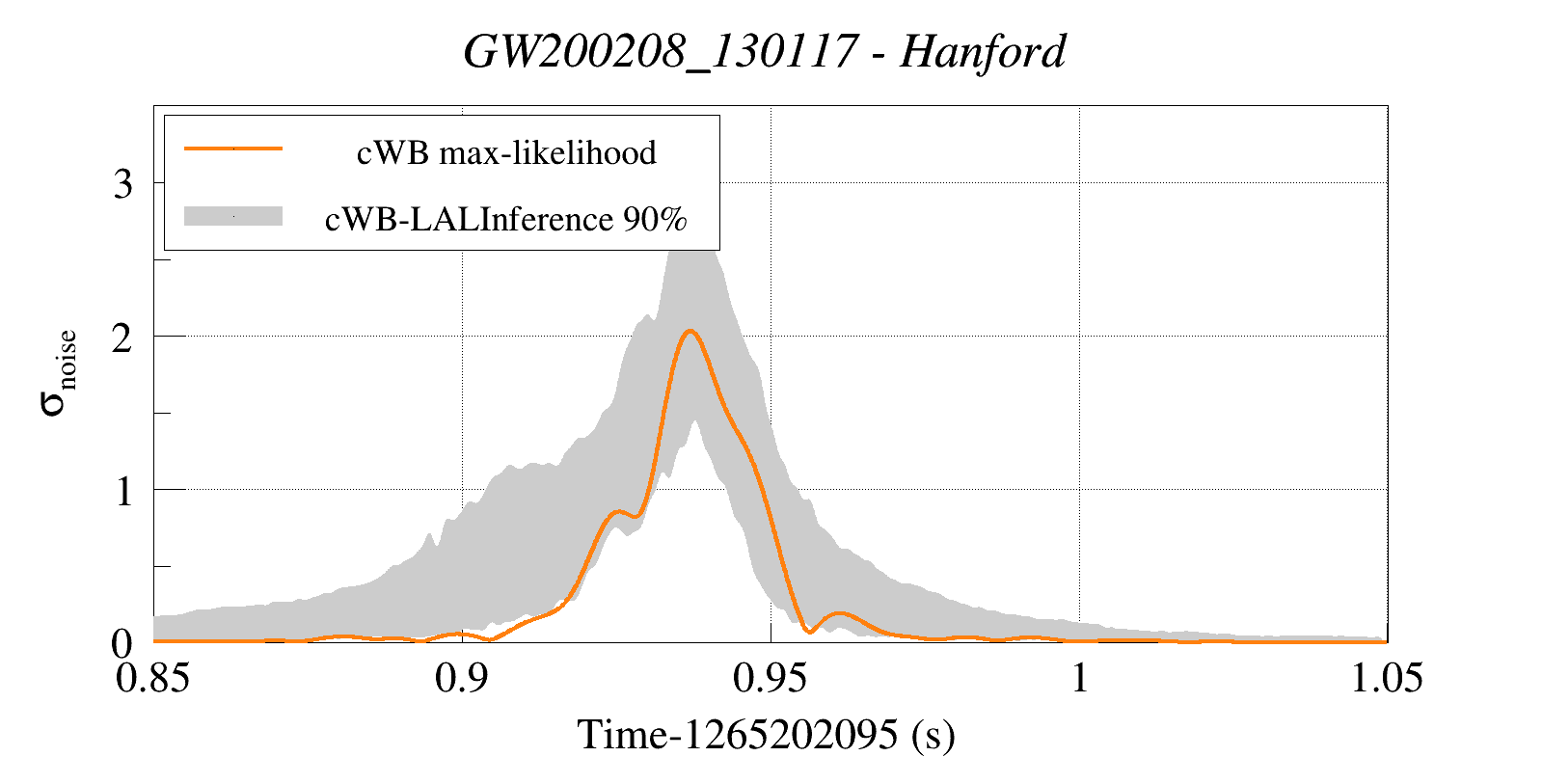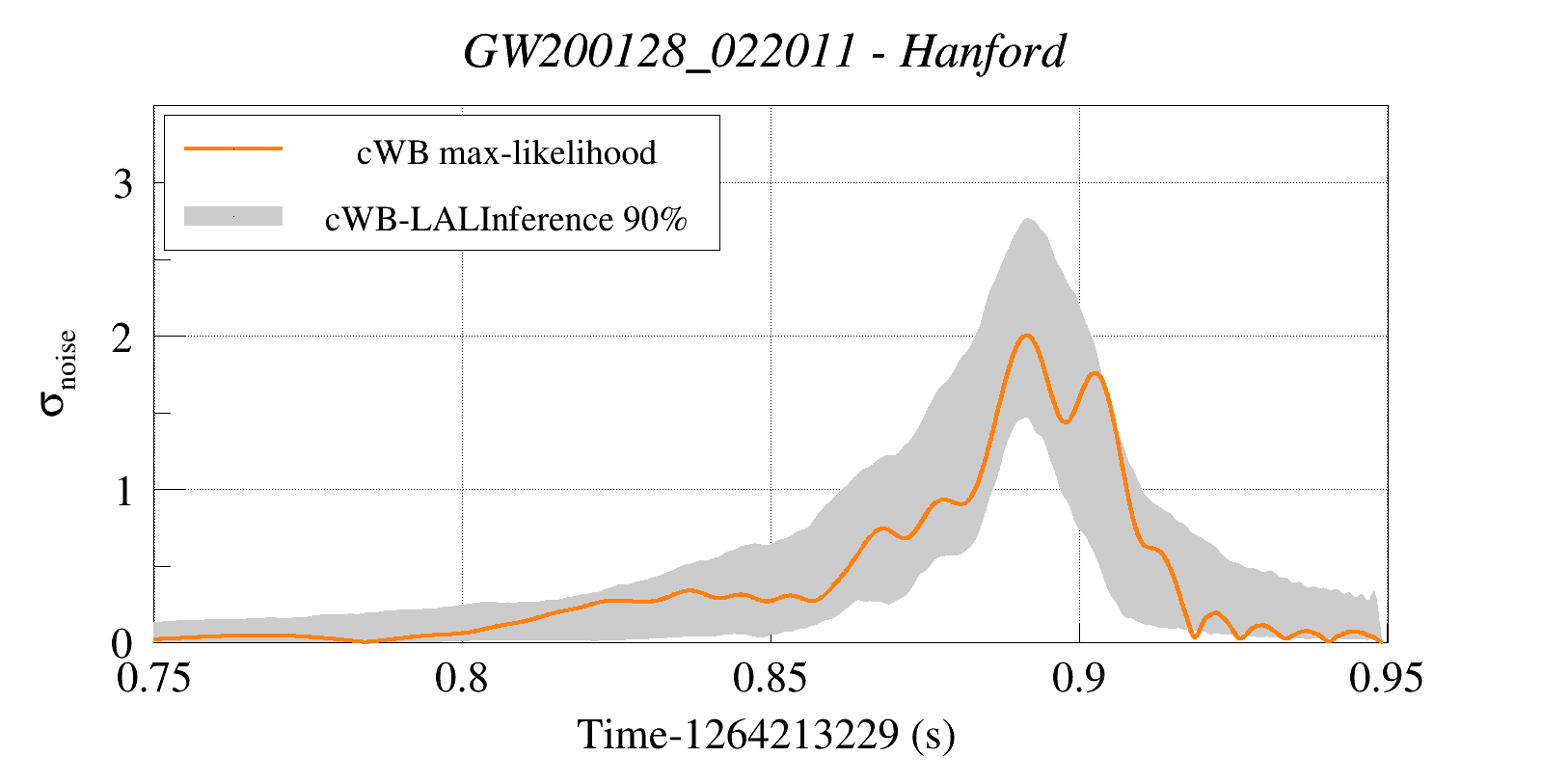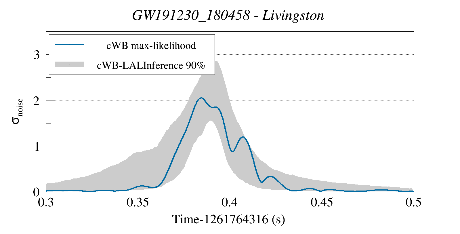 (cWB max-likelihood) vs (90% Confidence Interval: cWB Reconstructed LALInference Waveforms)