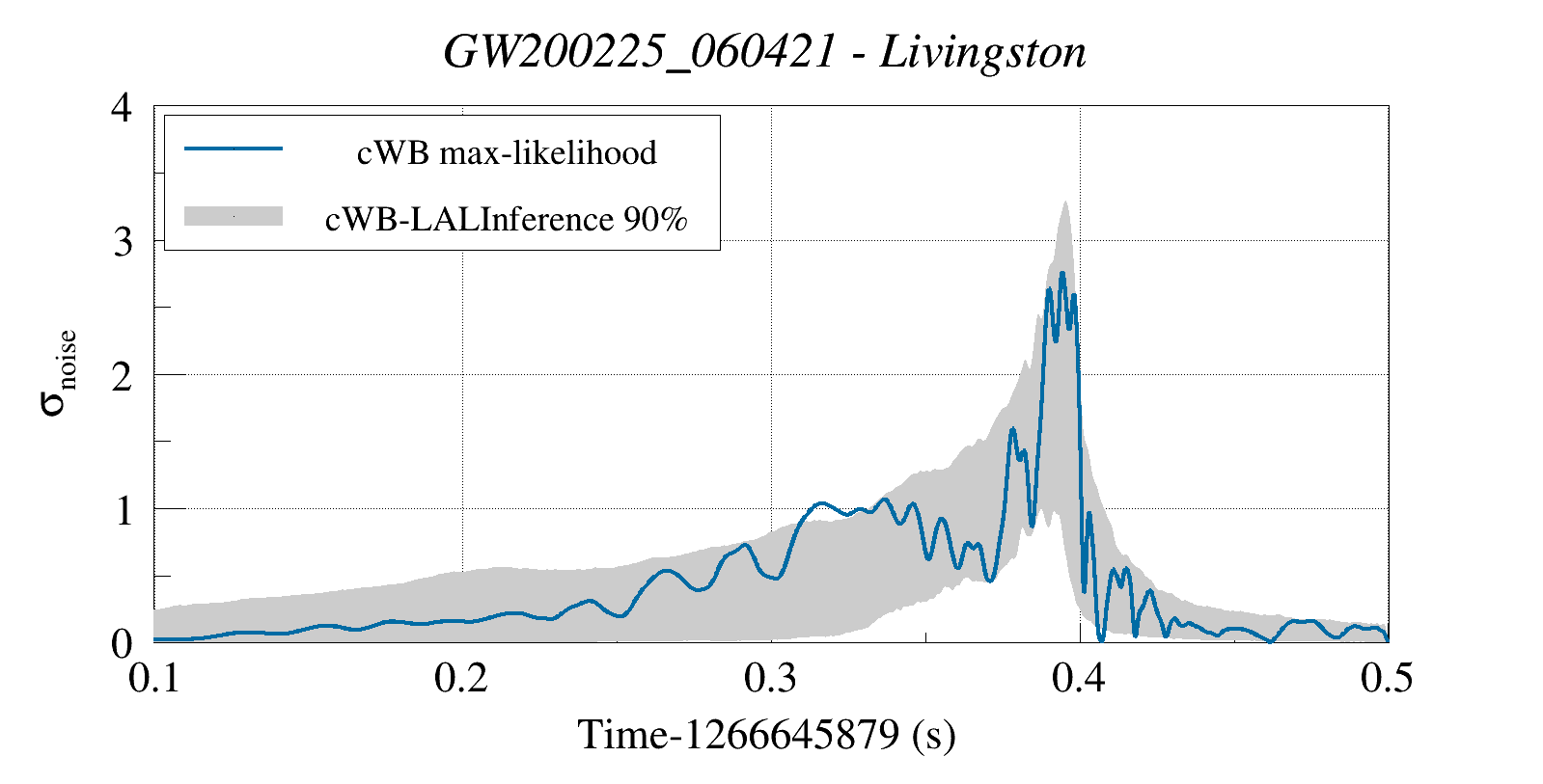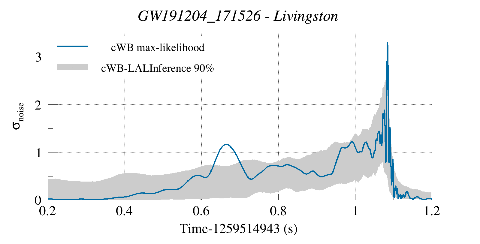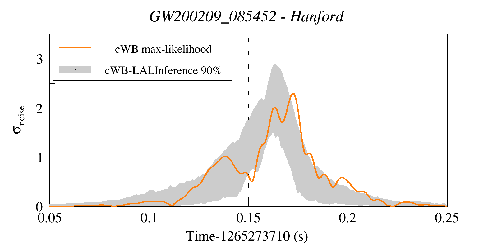(cWB max-likelihood) vs (90% Confidence Interval: cWB Reconstructed LALInference Waveforms)