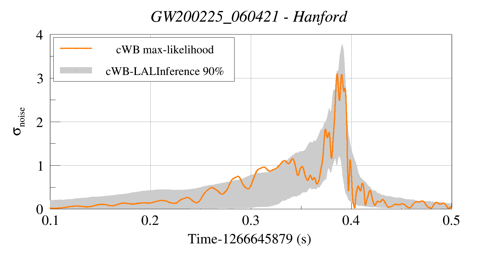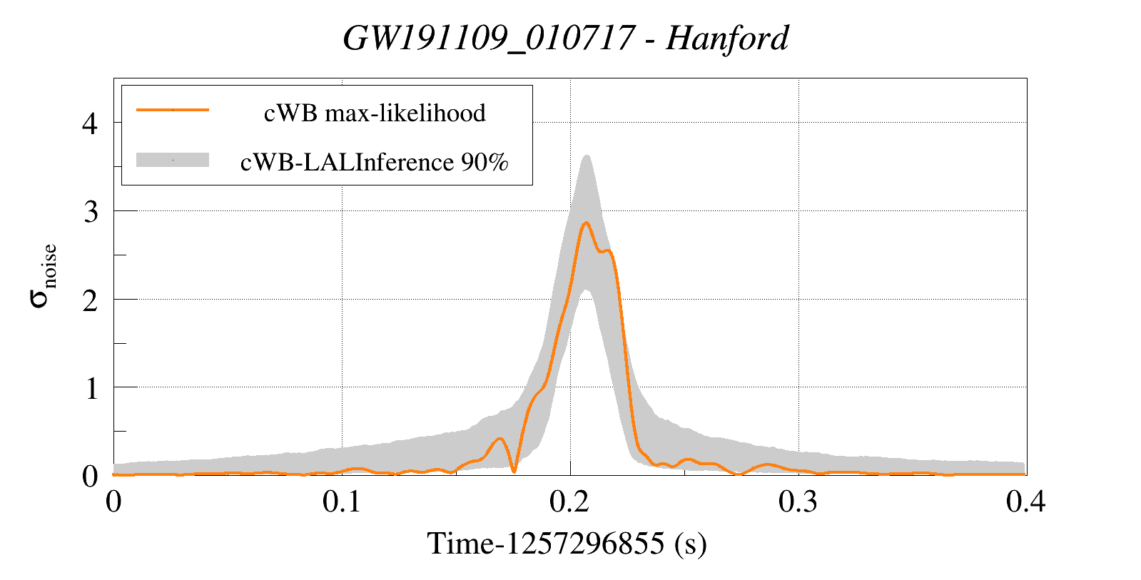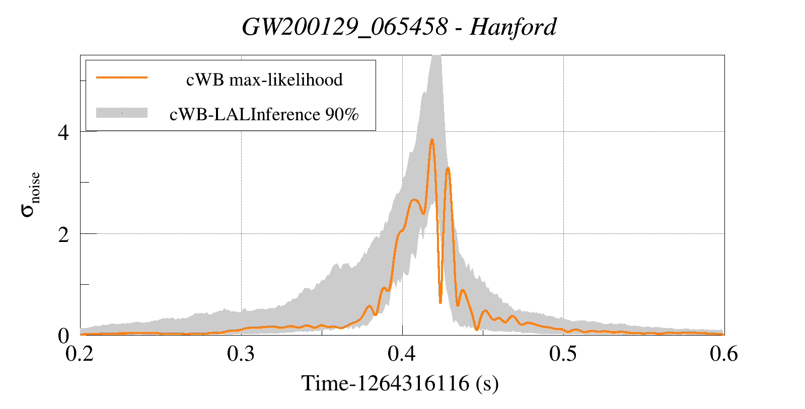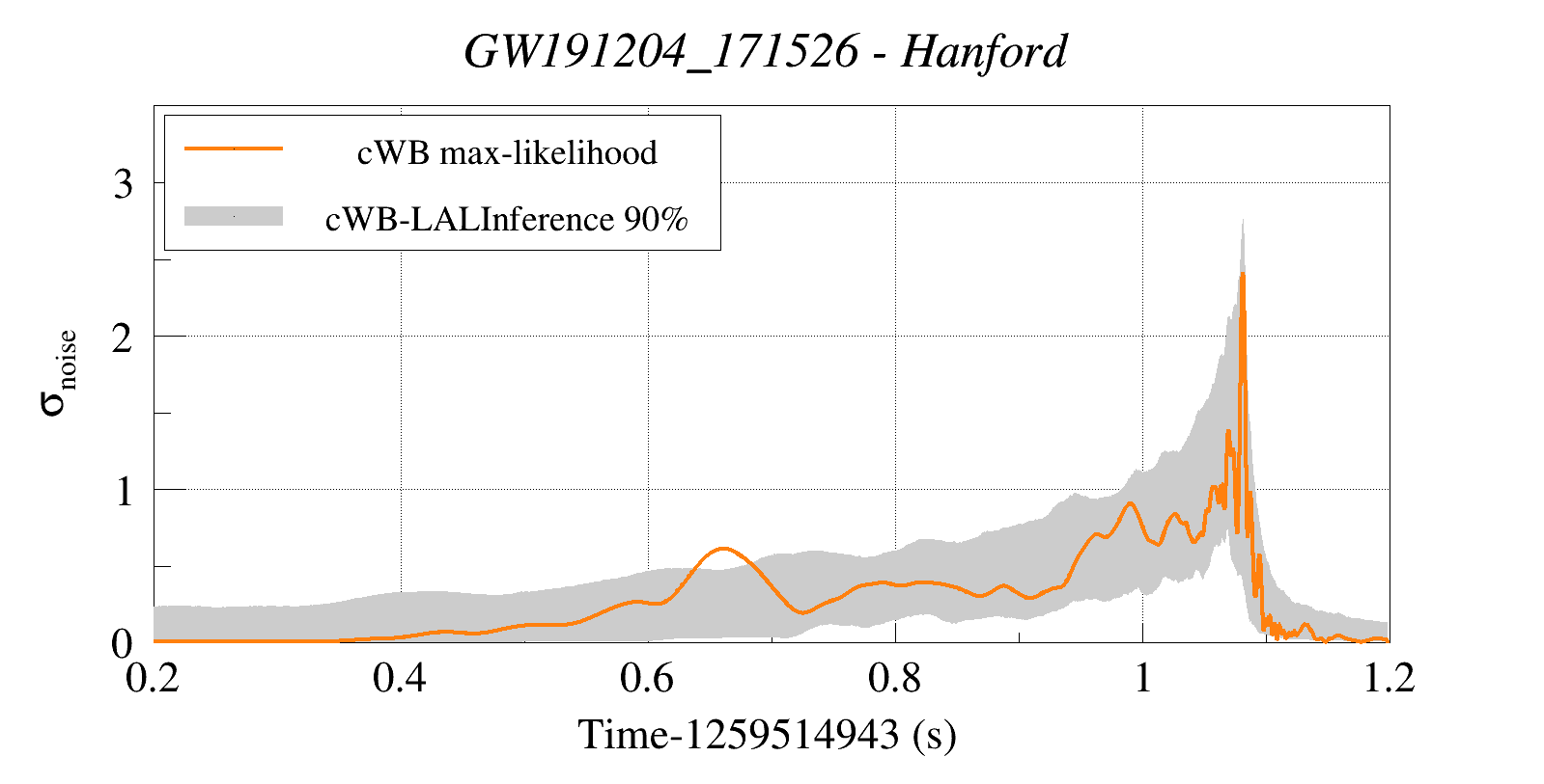 (cWB max-likelihood) vs (90% Confidence Interval: cWB Reconstructed LALInference Waveforms)